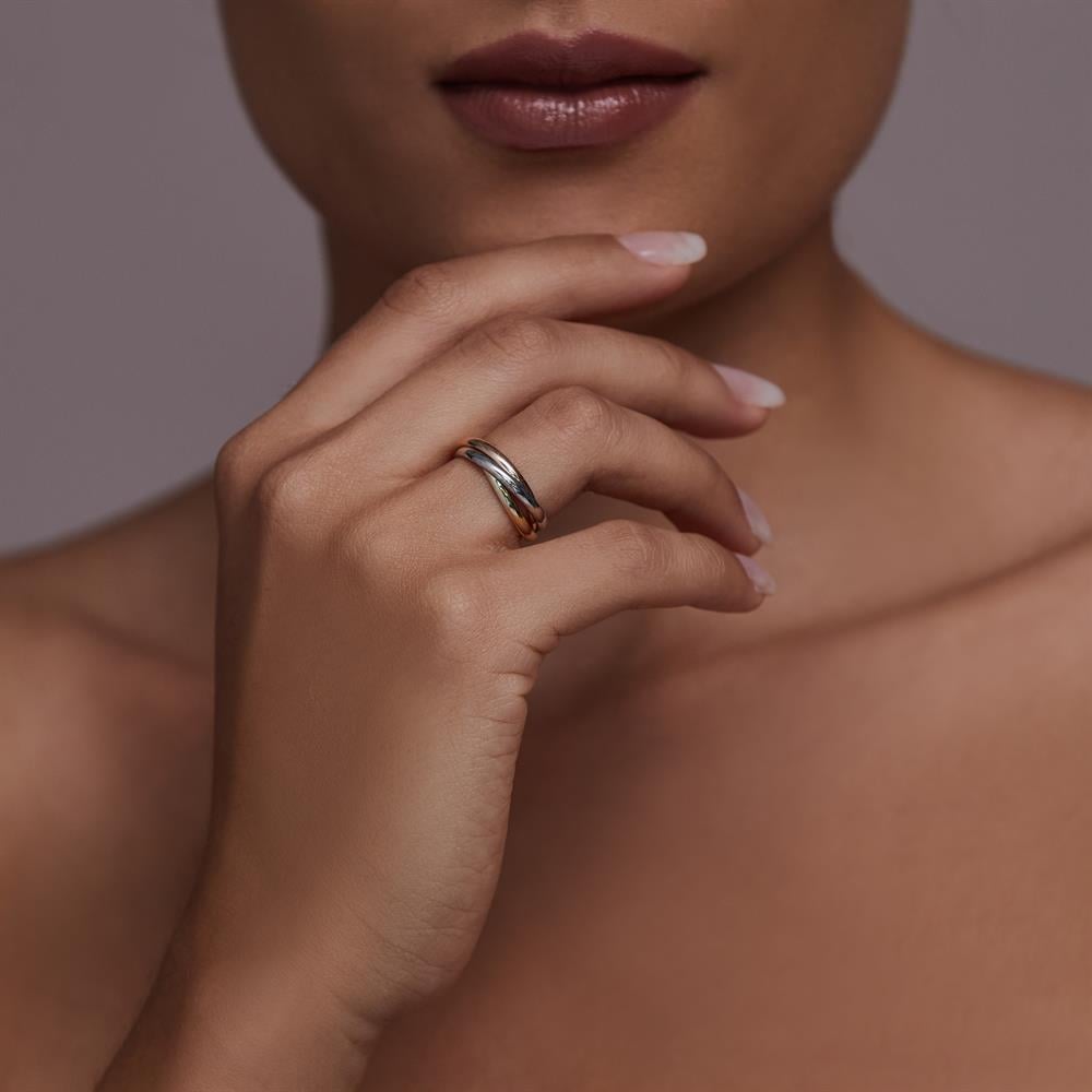 Tüm takılarınız ile uyum sağlayacak, üç altın rengi Trio Alyansta buluştu.